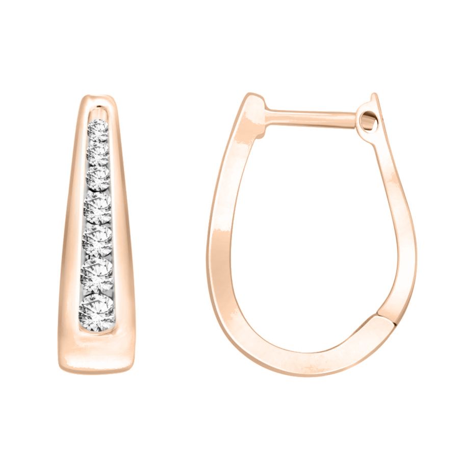 LADIES HOOP EARRINGS 0.50CT ROUND DIAMOND 10K ROSE GOLD