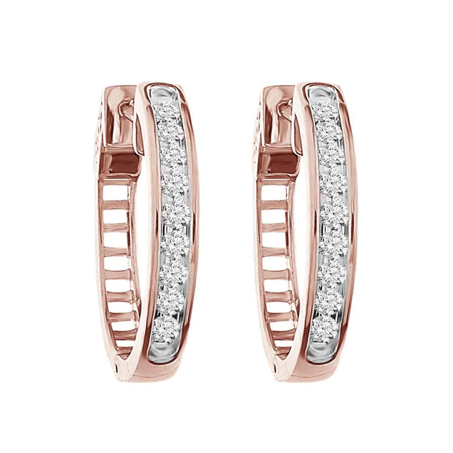 LADIES HOOP EARRINGS 0.50CT ROUND DIAMOND 10K ROSE GOLD