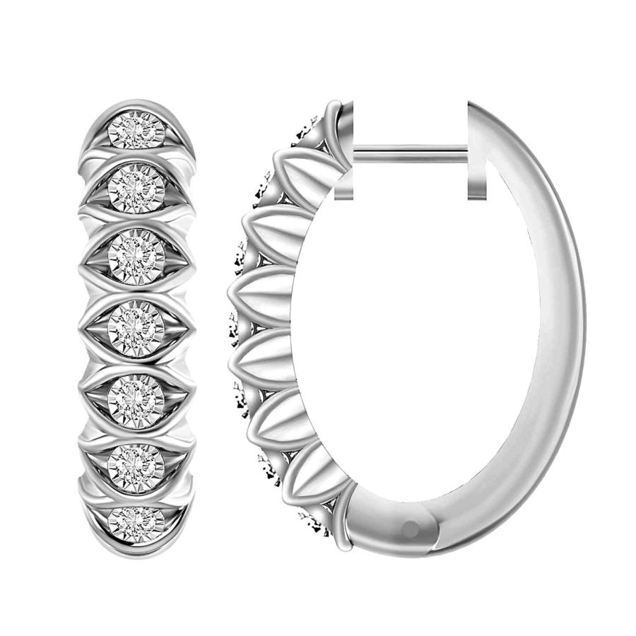 LADIES HOOP EARRINGS 0.50CT ROUND DIAMOND 10K WHITE GOLD