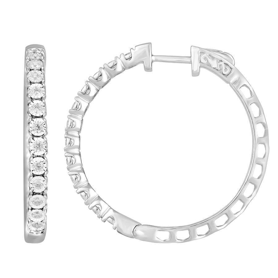 LADIES HOOP EARRINGS 0.50CT ROUND DIAMOND 10K WHITE GOLD