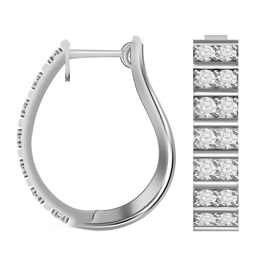 LADIES HOOP EARRINGS 0.50CT ROUND DIAMOND 10K WHITE GOLD