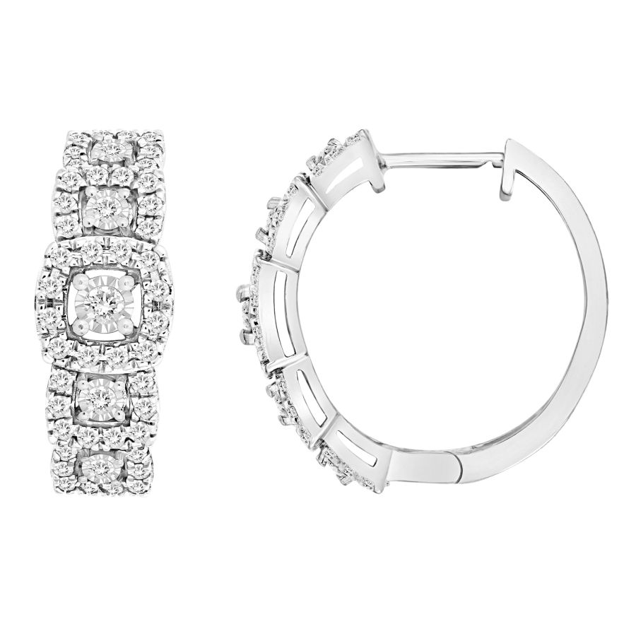 LADIES HOOP EARRINGS 0.50CT ROUND DIAMOND 10K WHITE GOLD