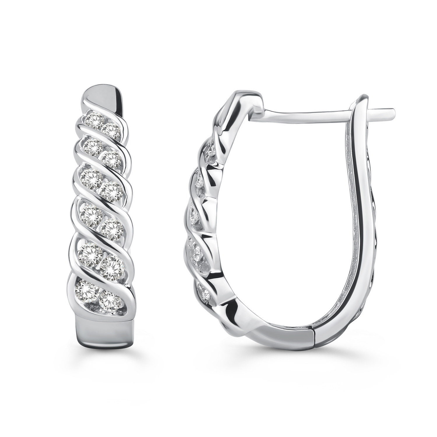 LADIES HOOP EARRINGS 0.50CT ROUND DIAMOND 10K WHITE GOLD