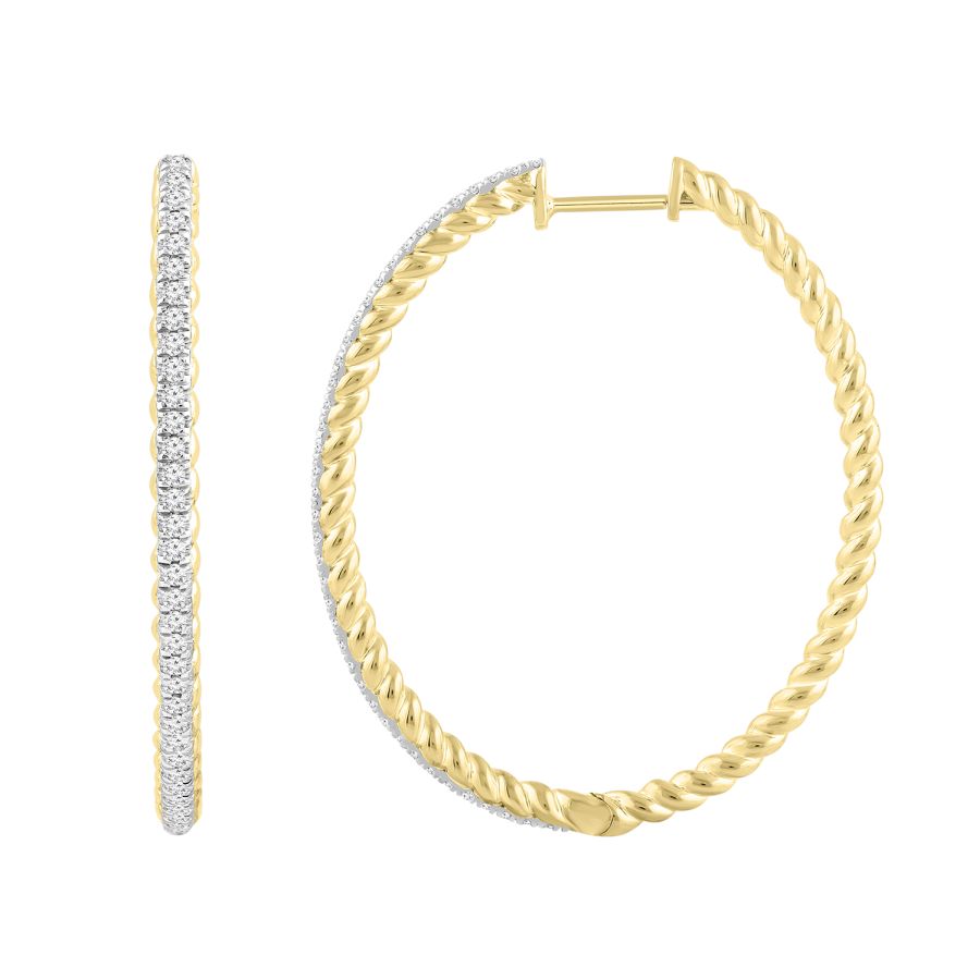 LADIES HOOP EARRINGS 0.50CT ROUND DIAMOND 10K YELLOW GOLD