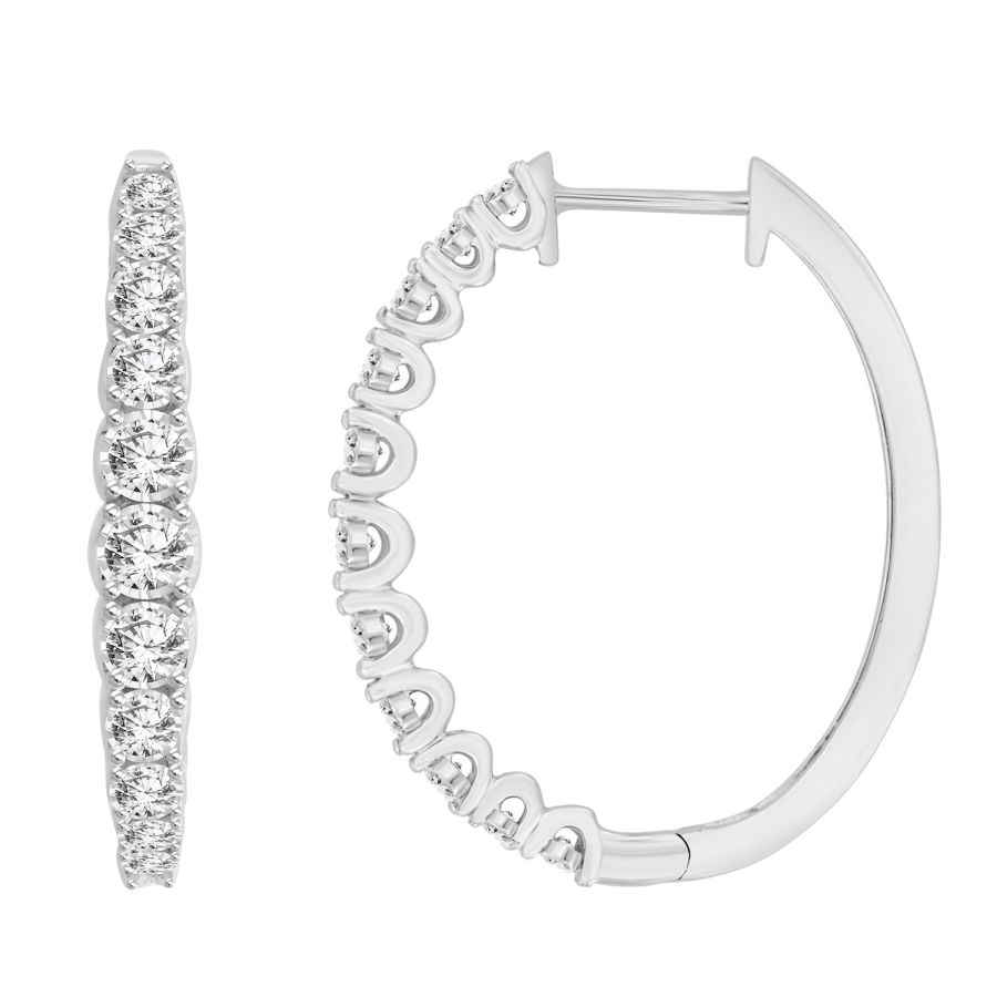 LADIES HOOP EARRINGS 0.75CT ROUND DIAMOND 10K WHITE GOLD