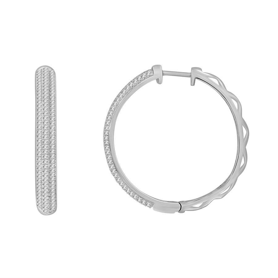 Home Earrings LADIES HOOP EARRINGS 0.75CT ROUND DIAMOND 10K WHITE GOLD