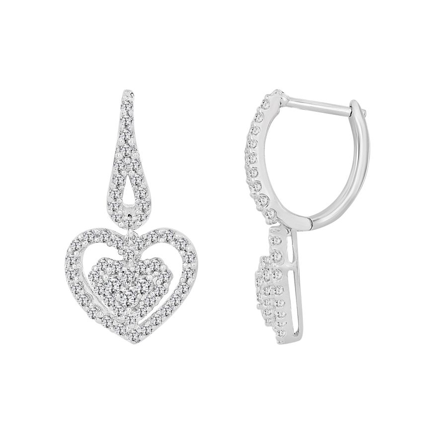 LADIES HOOP EARRINGS 0.75CT ROUND DIAMOND 10K WHITE GOLD