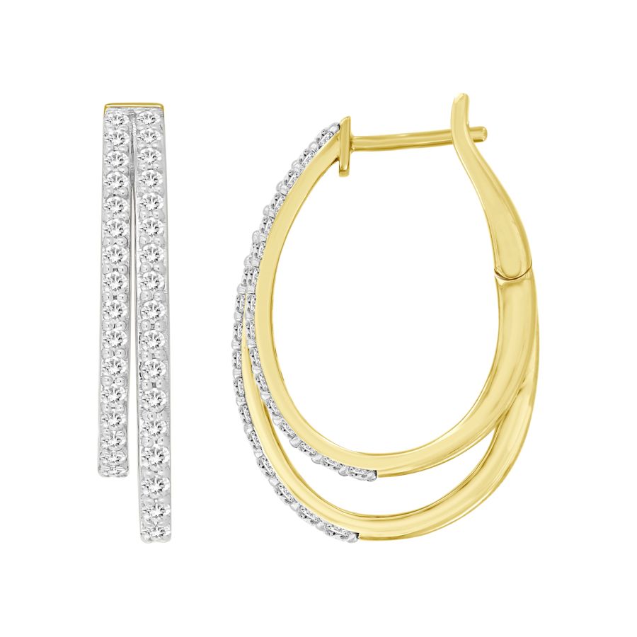 LADIES HOOP EARRINGS 1.50CT ROUND DIAMOND 10K YELLOW GOLD