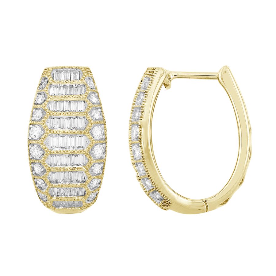LADIES HOOP EARRINGS 0.50CT ROUND/BAGUETTE DIAMOND 10K YELLOW GOLD