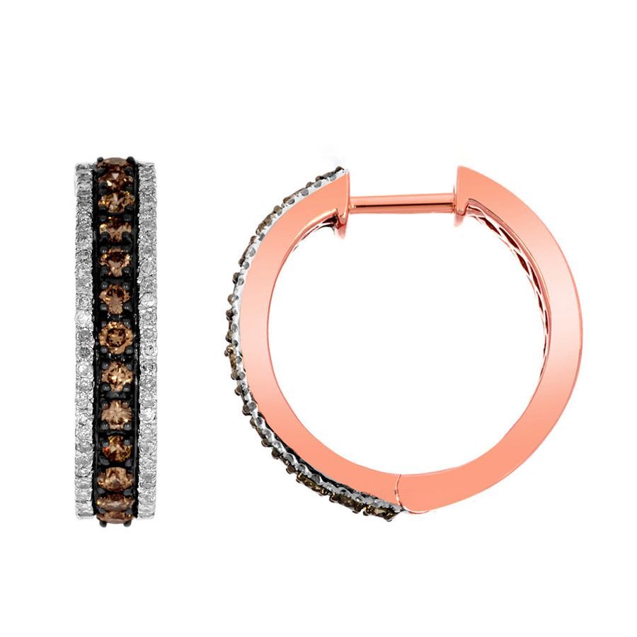 LADIES HOOP EARRINGS 1.00CT ROUND DARK BROWN DIAMOND 10K ROSE GOLD