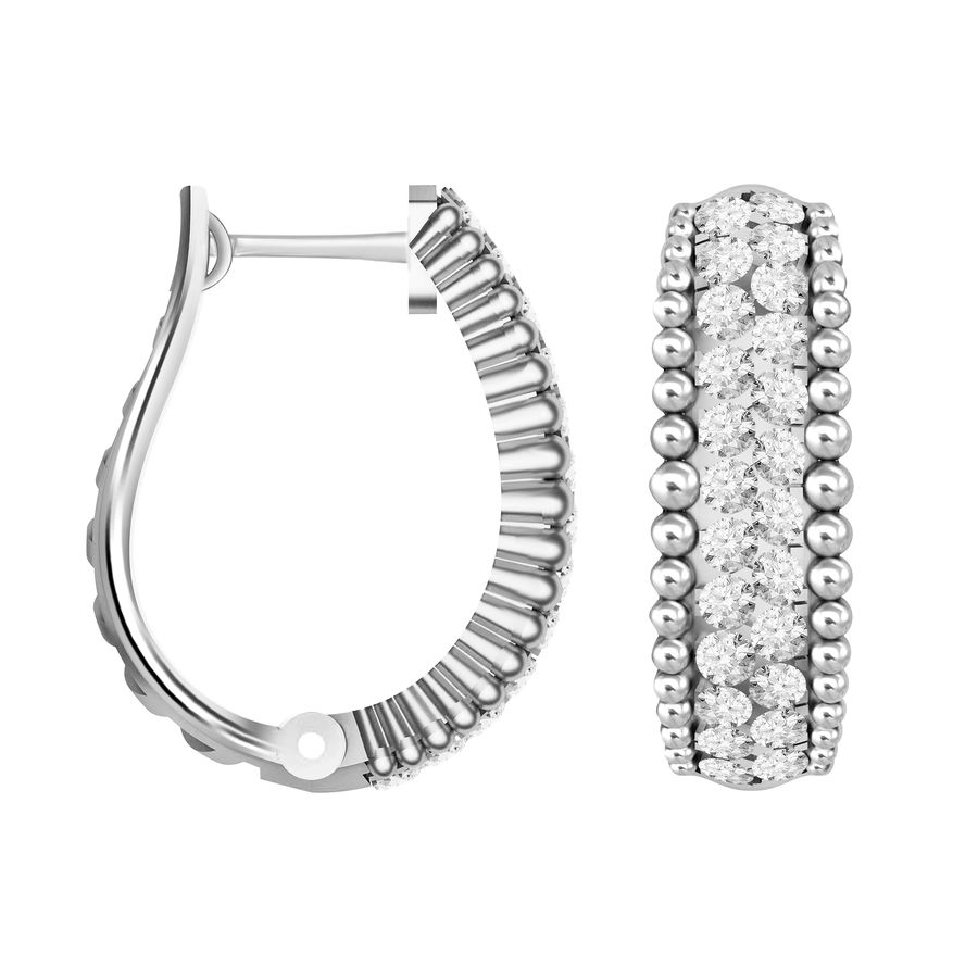 LADIES HOOP EARRINGS 1.00CT ROUND DIAMOND 10K WHITE GOLD