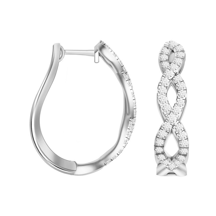 LADIES HOOP EARRINGS 1.00CT ROUND DIAMOND 10K WHITE GOLD