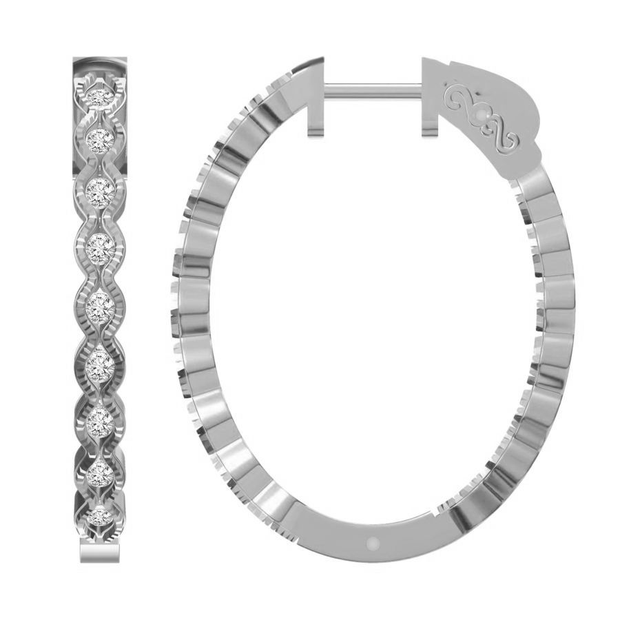 LADIES HOOP EARRINGS 1.00CT ROUND DIAMOND 10K WHITE GOLD