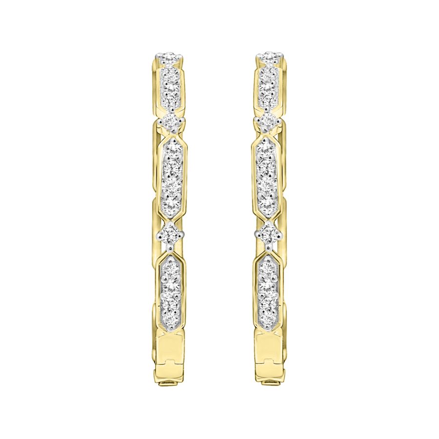 LADIES HOOP EARRINGS 0.50CT ROUND DIAMOND 10K YELLOW GOLD