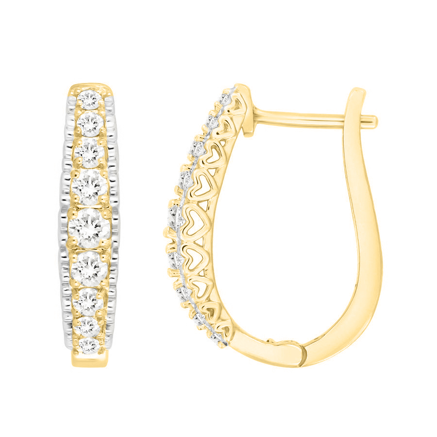 LADIES HOOP EARRINGS 0.50CT ROUND DIAMOND 10K YELLOW GOLD