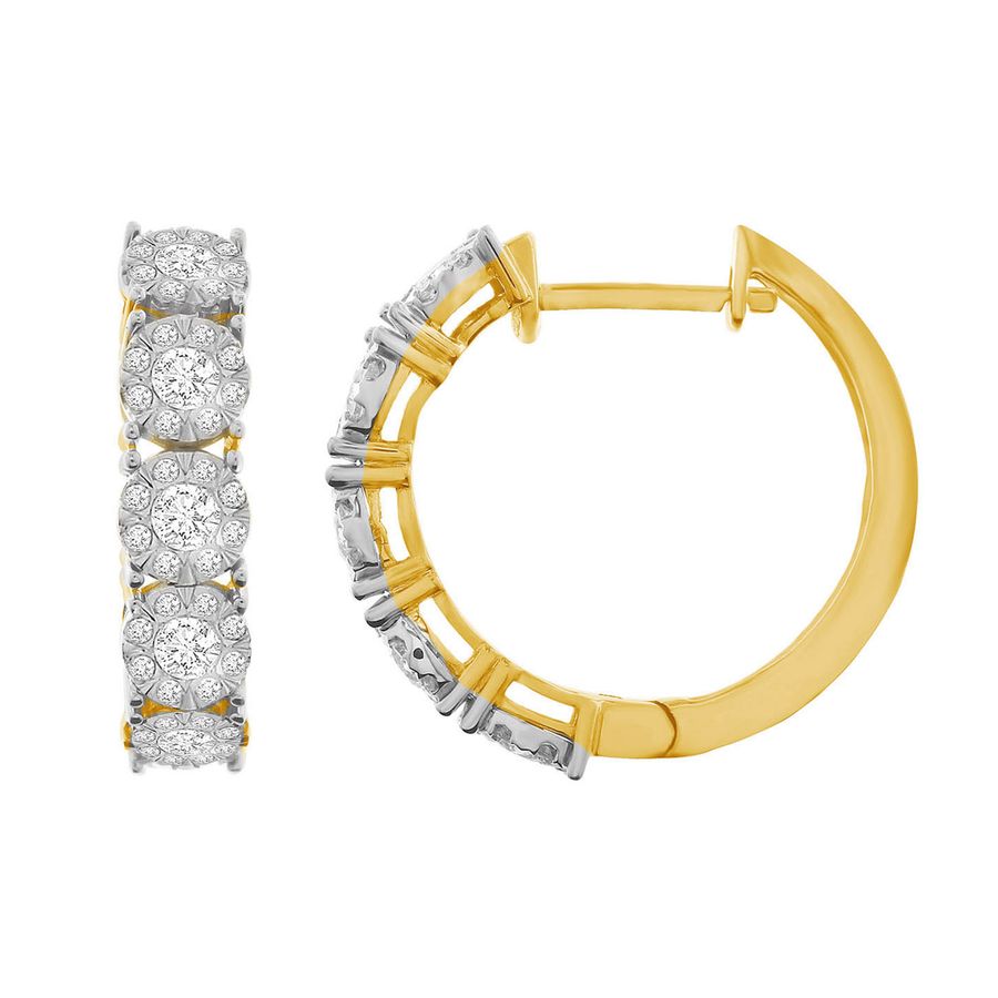 LADIES HOOP EARRINGS 0.50CT ROUND DIAMOND 10K YELLOW GOLD
