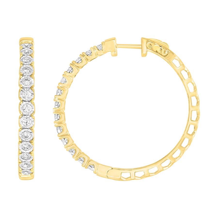 LADIES HOOP EARRINGS 1.00CT ROUND DIAMOND 10K YELLOW GOLD