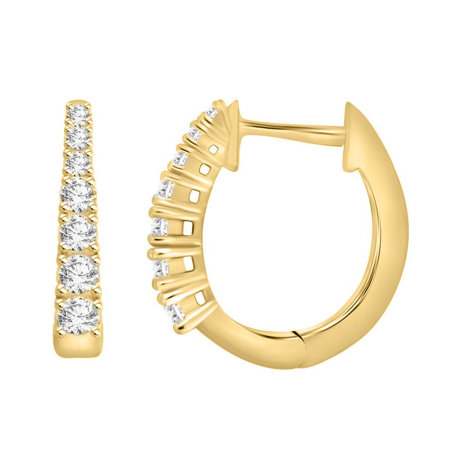 LADIES HOOP EARRINGS 1.00CT ROUND DIAMOND 10K YELLOW GOLD