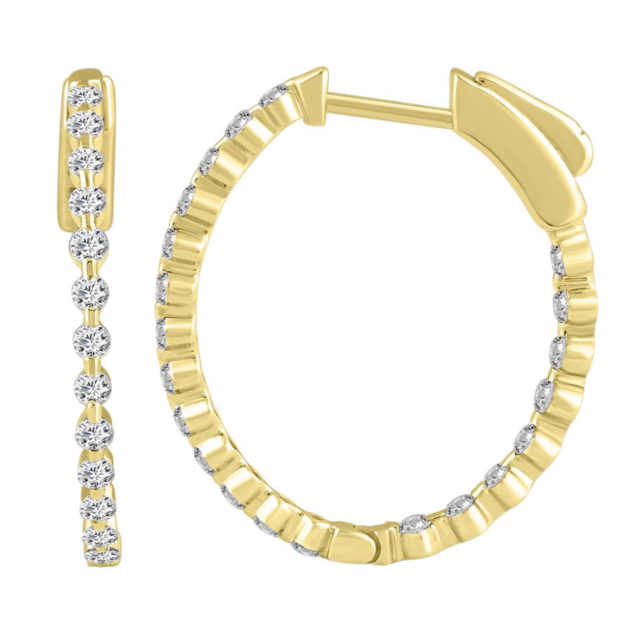 LADIES HOOP EARRINGS 1.00CT ROUND DIAMOND 10K YELLOW GOLD