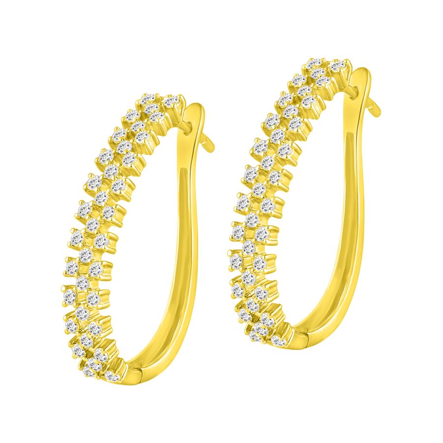 LADIES HOOP EARRINGS 1.00CT ROUND DIAMOND 10K YELLOW GOLD