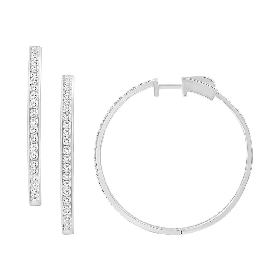 LADIES HOOP EARRINGS 1.50CT ROUND DIAMOND 10K WHITE GOLD