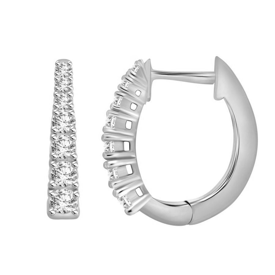 LADIES HOOP EARRINGS 1.50CT ROUND DIAMOND 10K WHITE GOLD