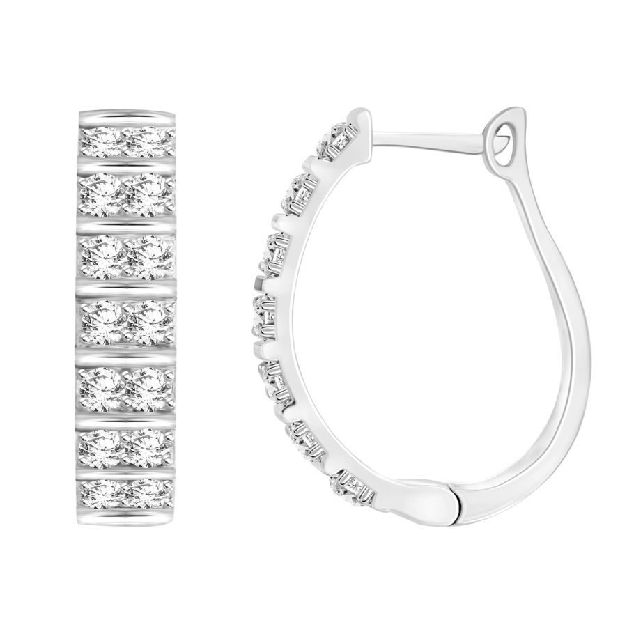 LADIES HOOP EARRINGS 1.50CT ROUND DIAMOND 10K WHITE GOLD