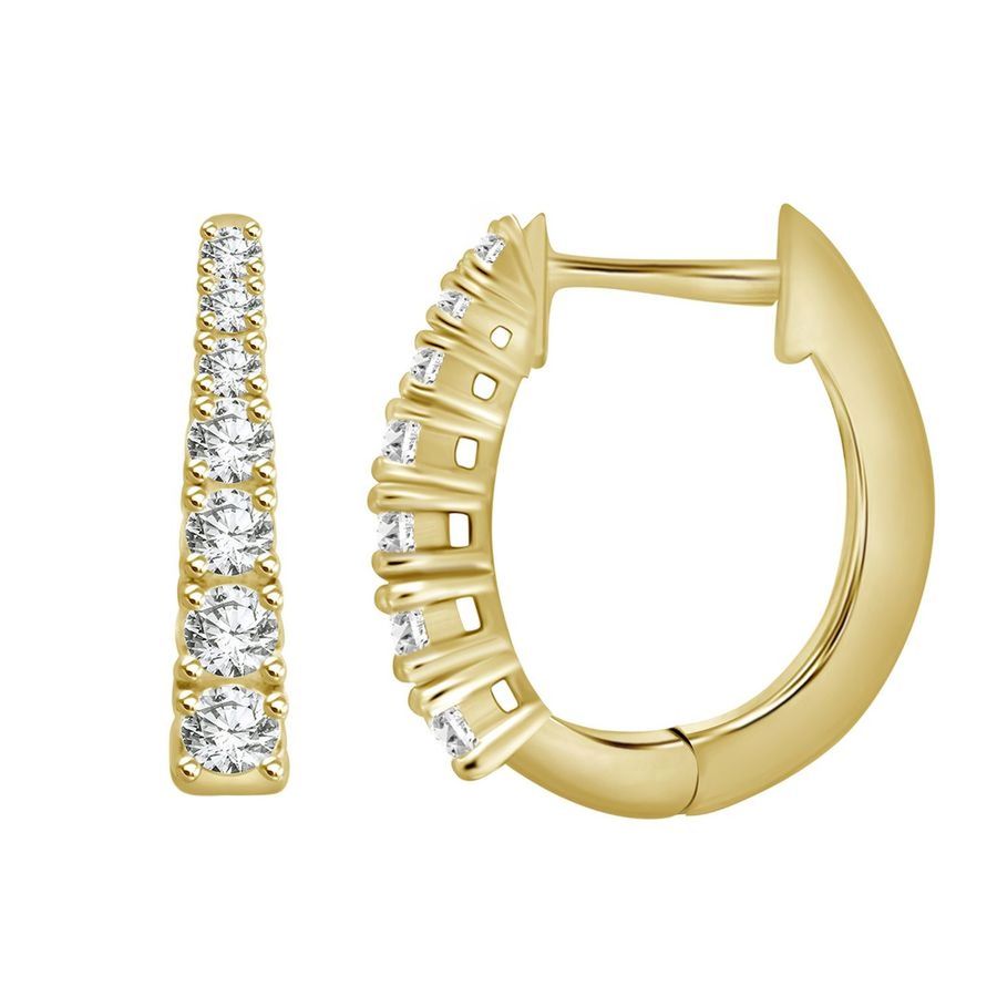 LADIES HOOP EARRINGS 1.50CT ROUND DIAMOND 10K YELLOW GOLD
