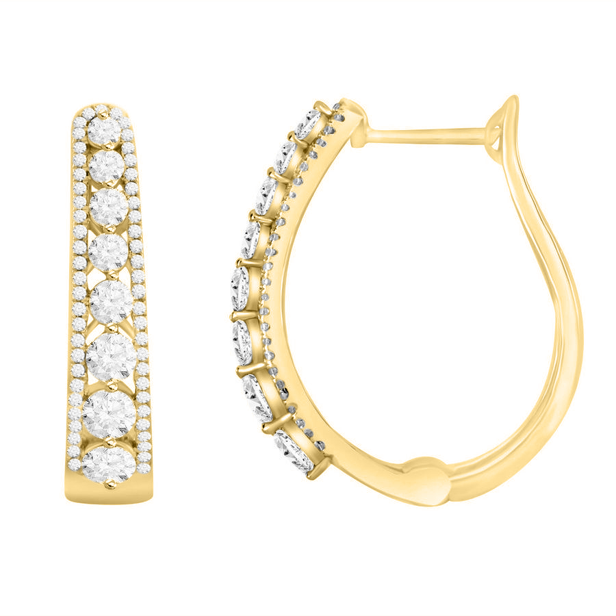 LADIES HOOP EARRINGS 1.50CT ROUND DIAMOND 10K YELLOW GOLD