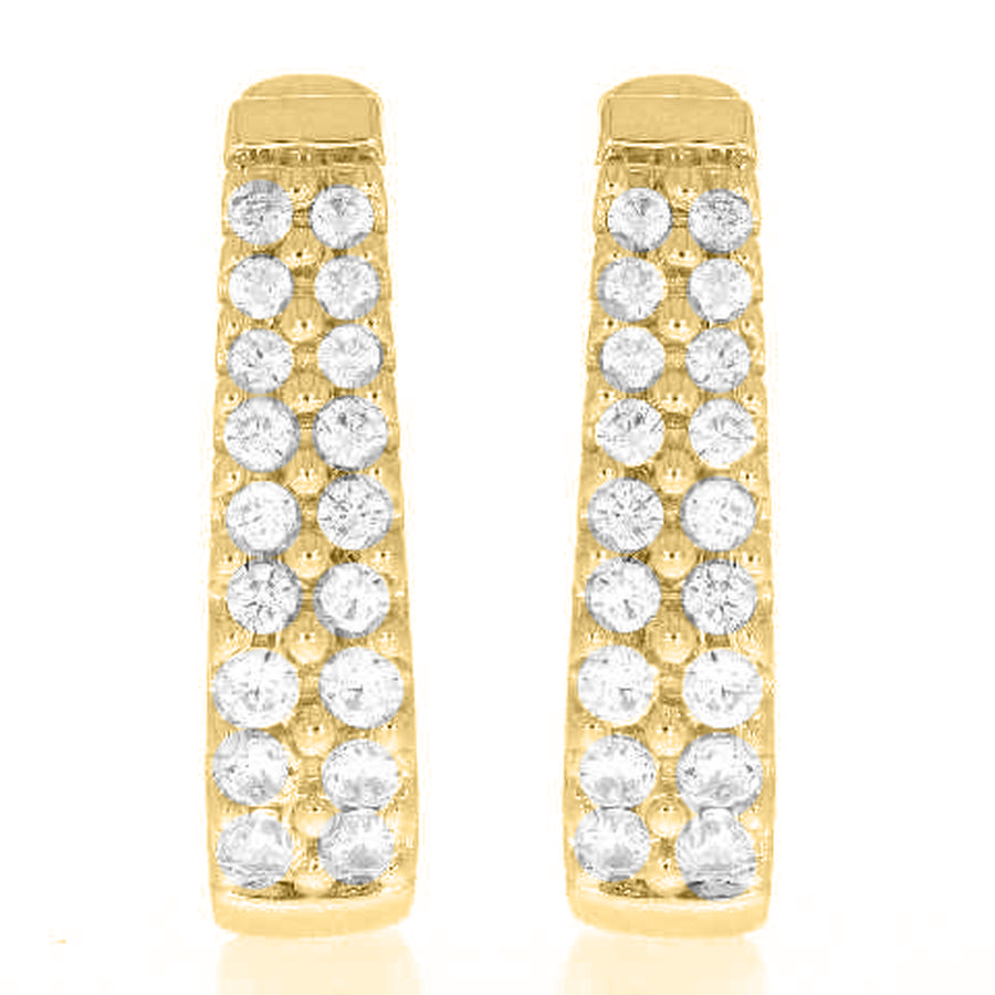 LADIES HOOP EARRINGS 1.50CT ROUND DIAMOND 14K YELLOW GOLD