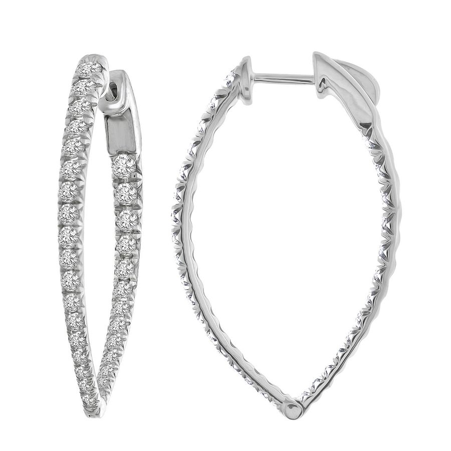 LADIES HOOP EARRINGS 2.00CT ROUND DIAMOND 10K WHITE GOLD