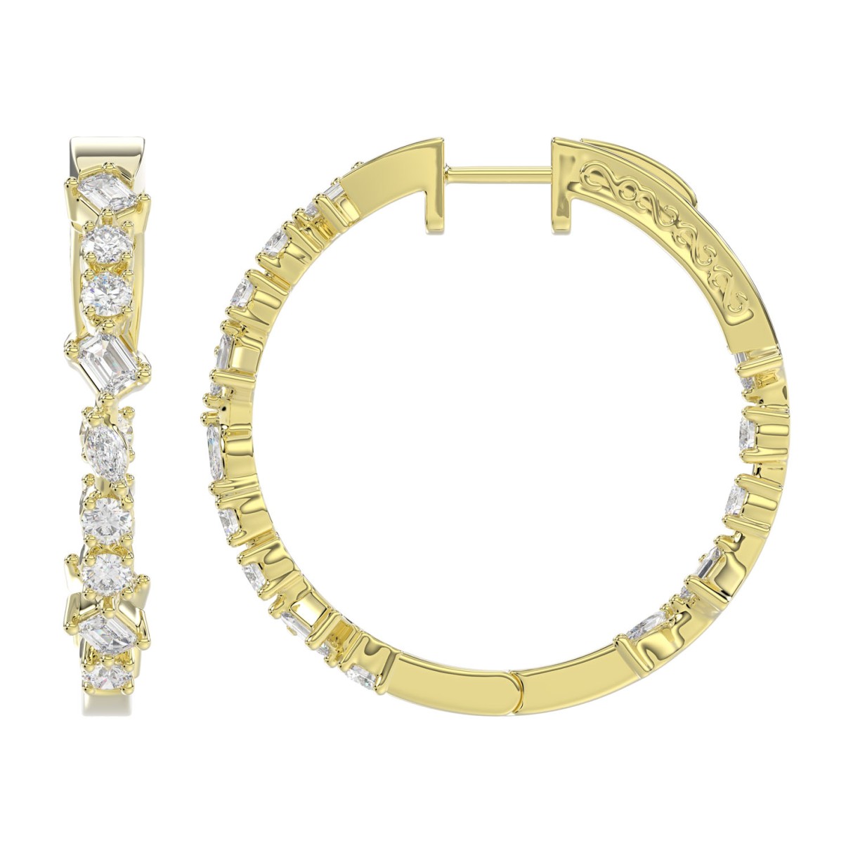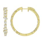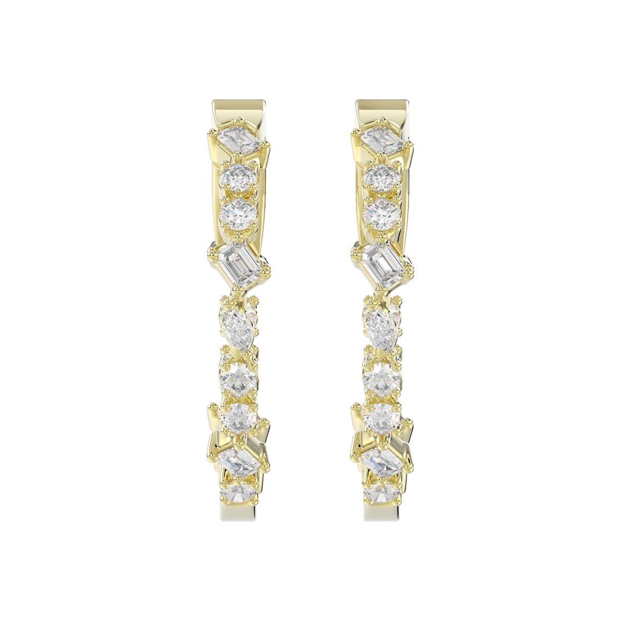 LADIES HOOP EARRINGS 2 1/2CT ROUND/EMERALD/MARQUISE DIAMOND 14K YELLOW GOLD