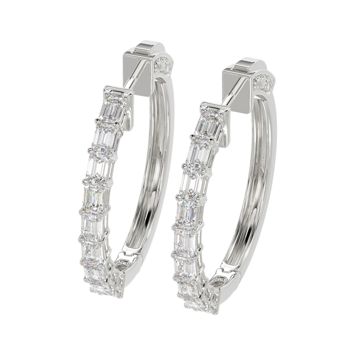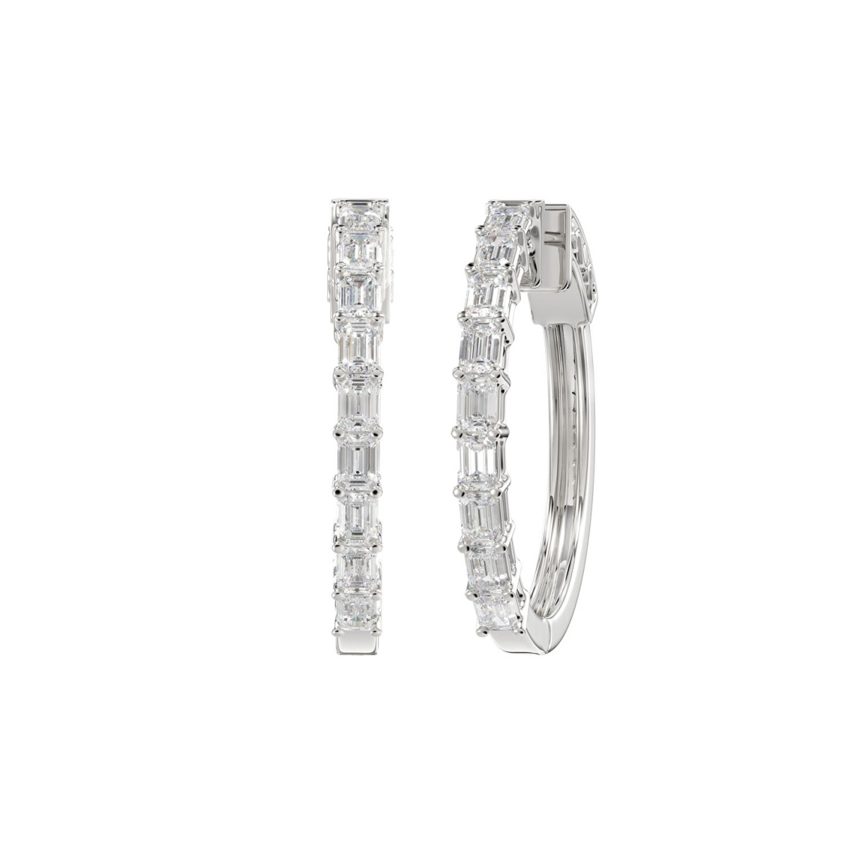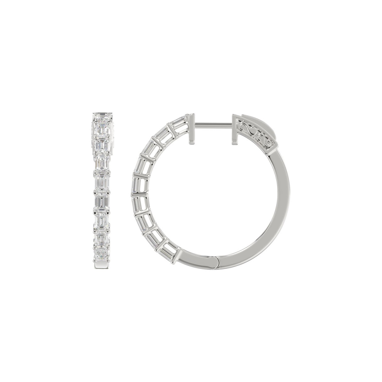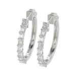 LADIES HOOP EARRINGS 2CT EMERALD DIAMOND 14K WHITE GOLD