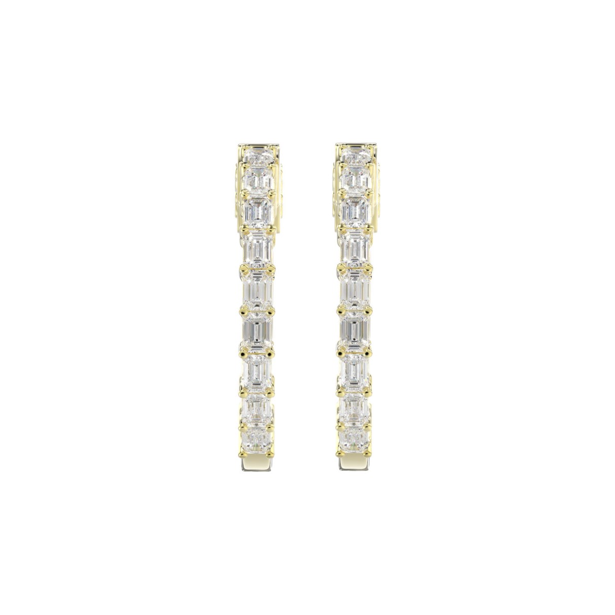 LADIES HOOP EARRINGS 2CT EMERALD DIAMOND 14K YELLOW GOLD
