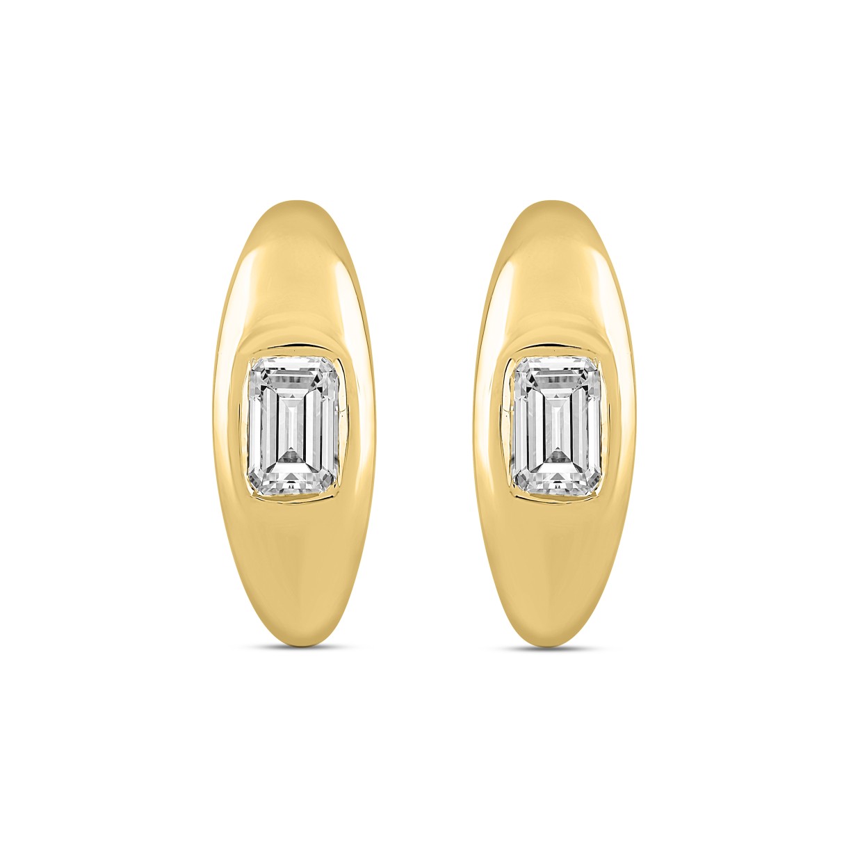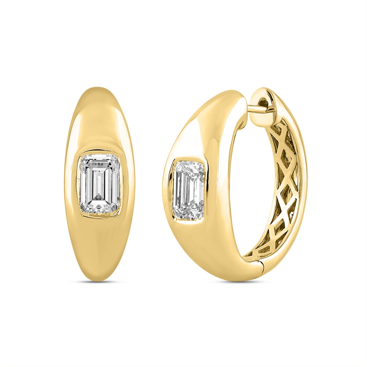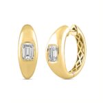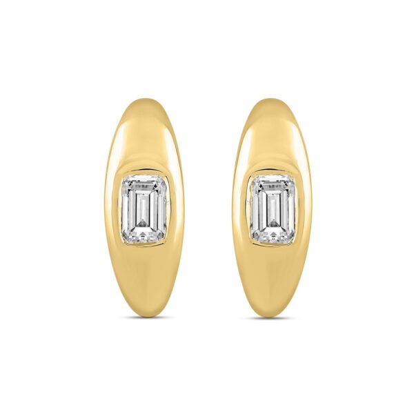 LADIES HOOP EARRINGS 2CT EMERALD DIAMOND 14K YELLOW GOLD