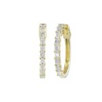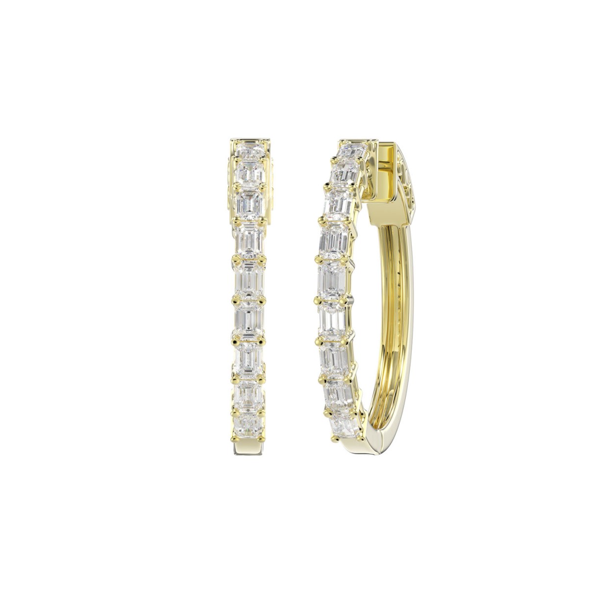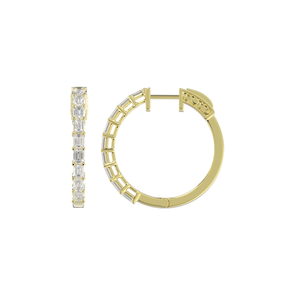 LADIES HOOP EARRINGS 2CT EMERALD DIAMOND 14K YELLOW GOLD