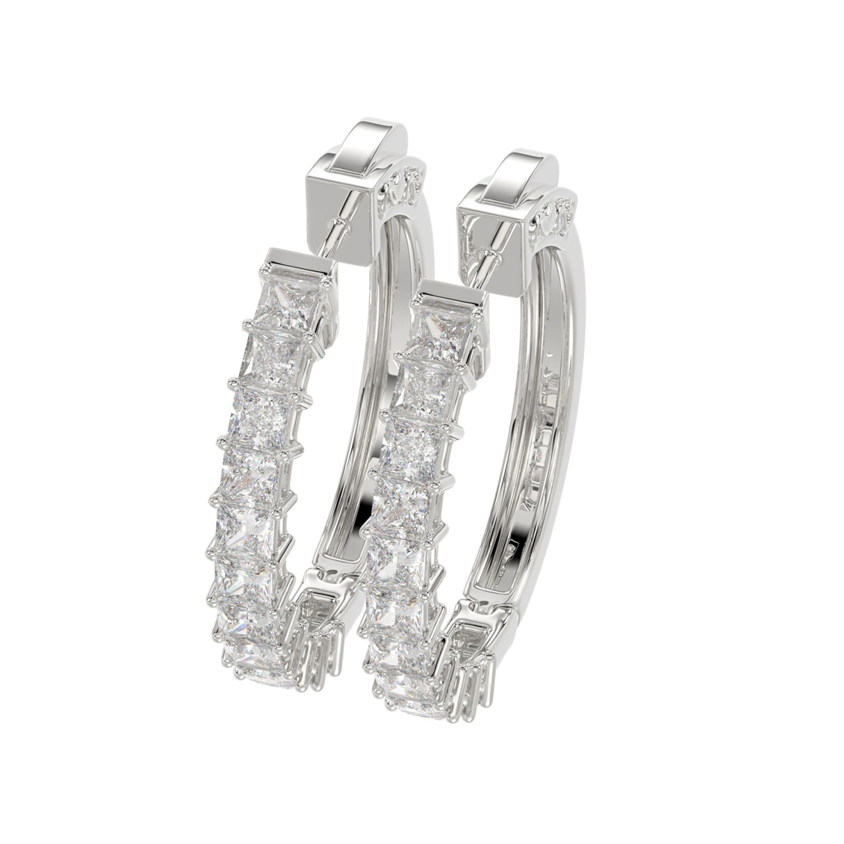 LADIES HOOP EARRINGS 2CT PRINCESS DIAMOND 14K WHITE GOLD