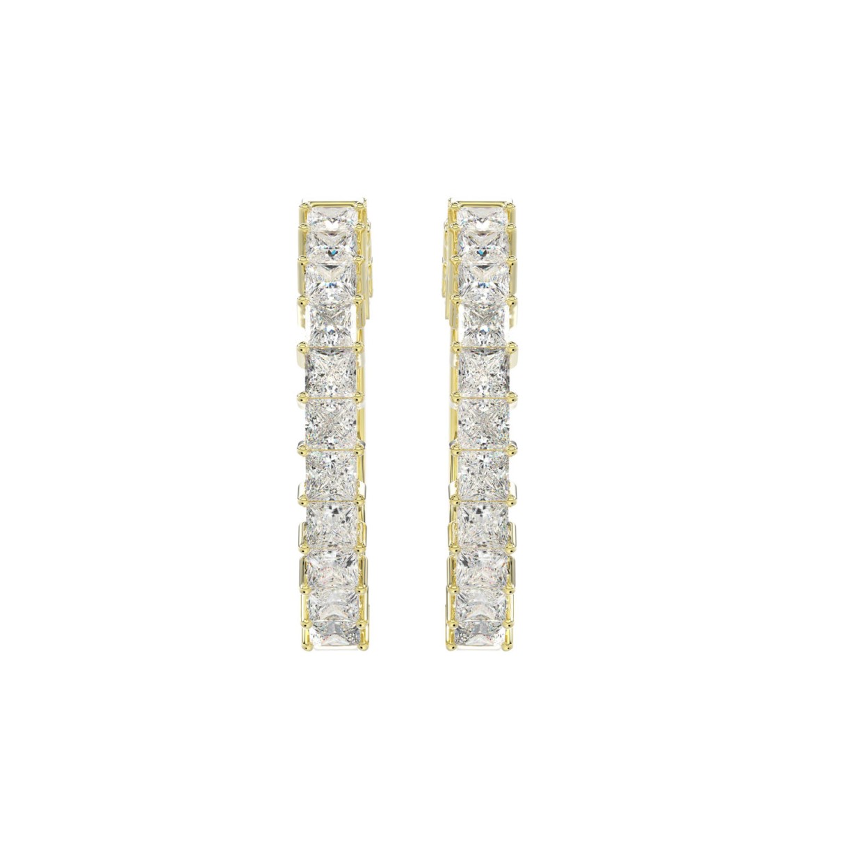 LADIES HOOP EARRINGS 2CT PRINCESS DIAMOND 14K YELLOW GOLD