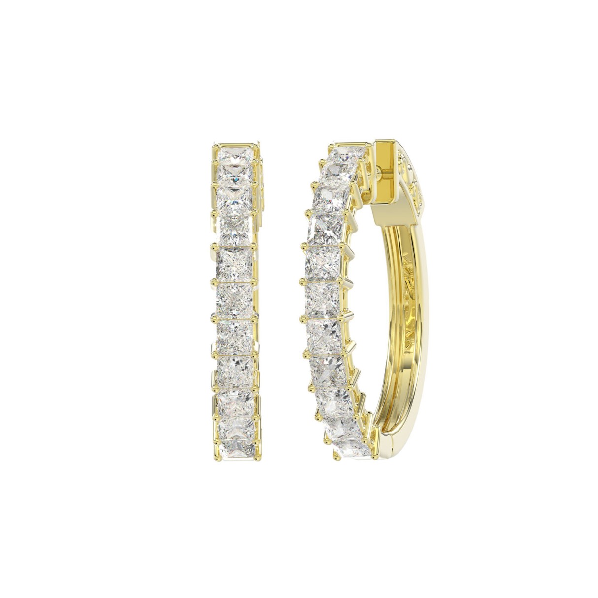 LADIES HOOP EARRINGS 2CT PRINCESS DIAMOND 14K YELLOW GOLD