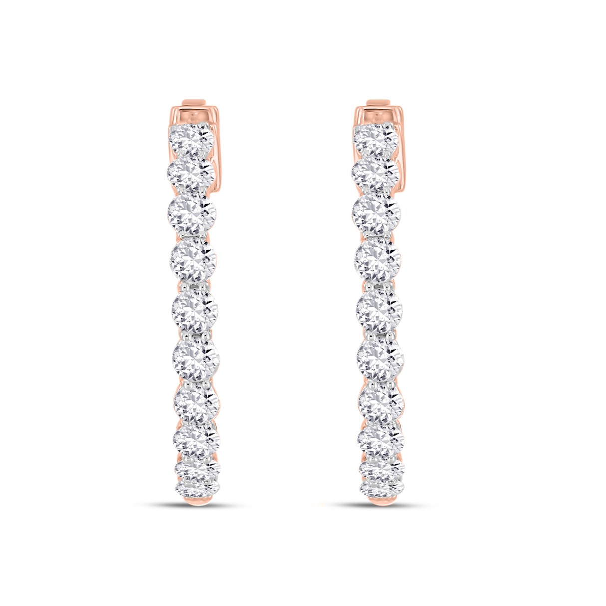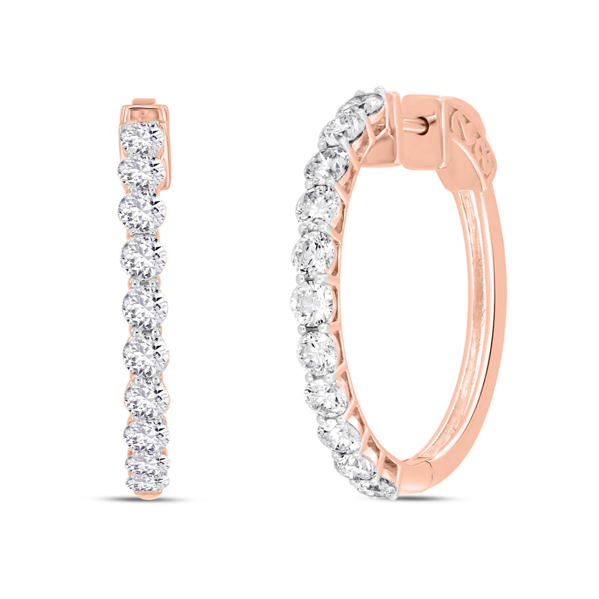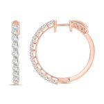 LADIES HOOP EARRINGS 2CT ROUND DIAMOND 14K ROSE GOLD