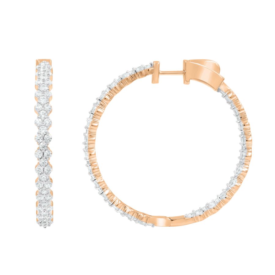 LADIES HOOP EARRINGS 4.00CT ROUND DIAMOND 10K ROSE GOLD