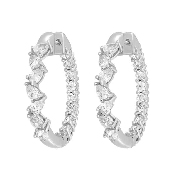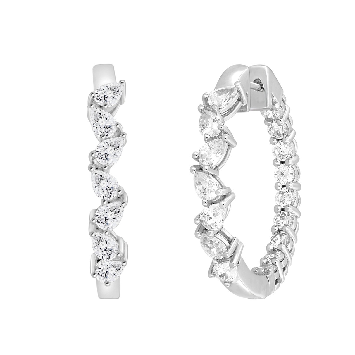 LADIES HOOP EARRINGS 4 3/4CT PEAR/ROUND DIAMOND 14K WHITE GOLD