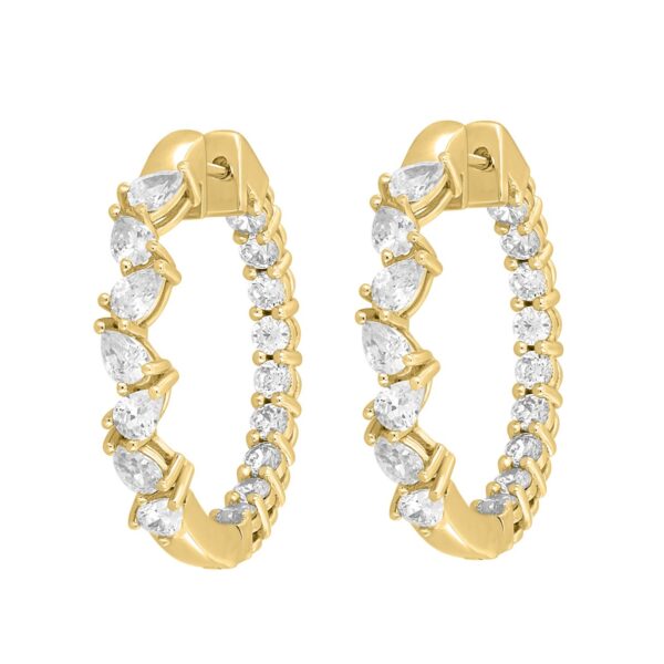 LADIES HOOP EARRINGS 4 3/4CT PEAR/ROUND DIAMOND 14K YELLOW GOLD