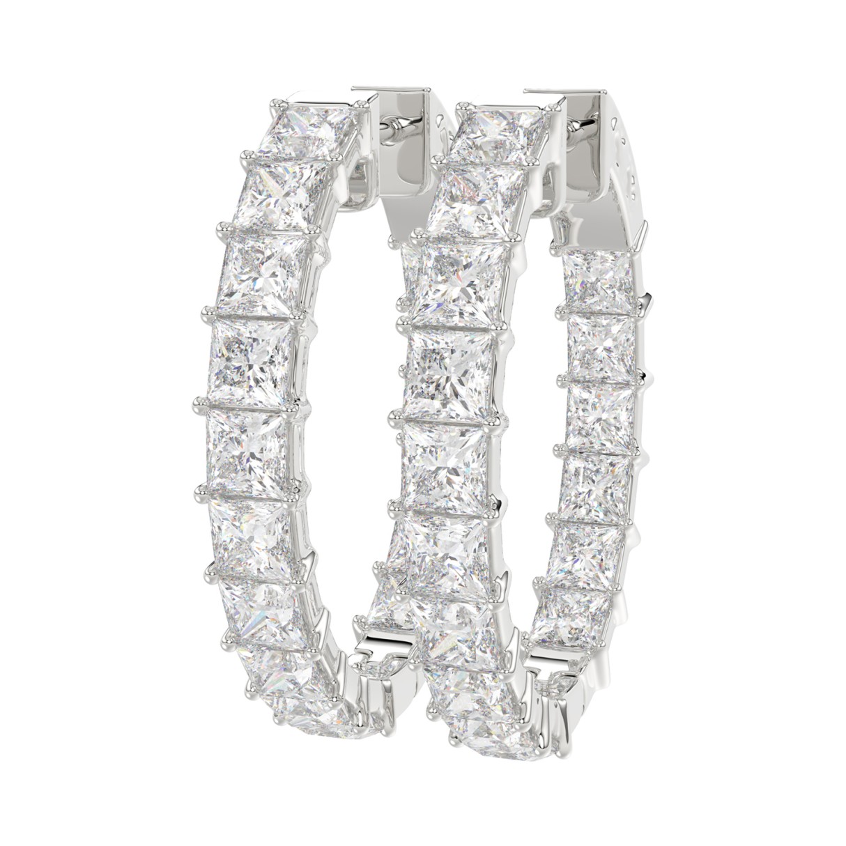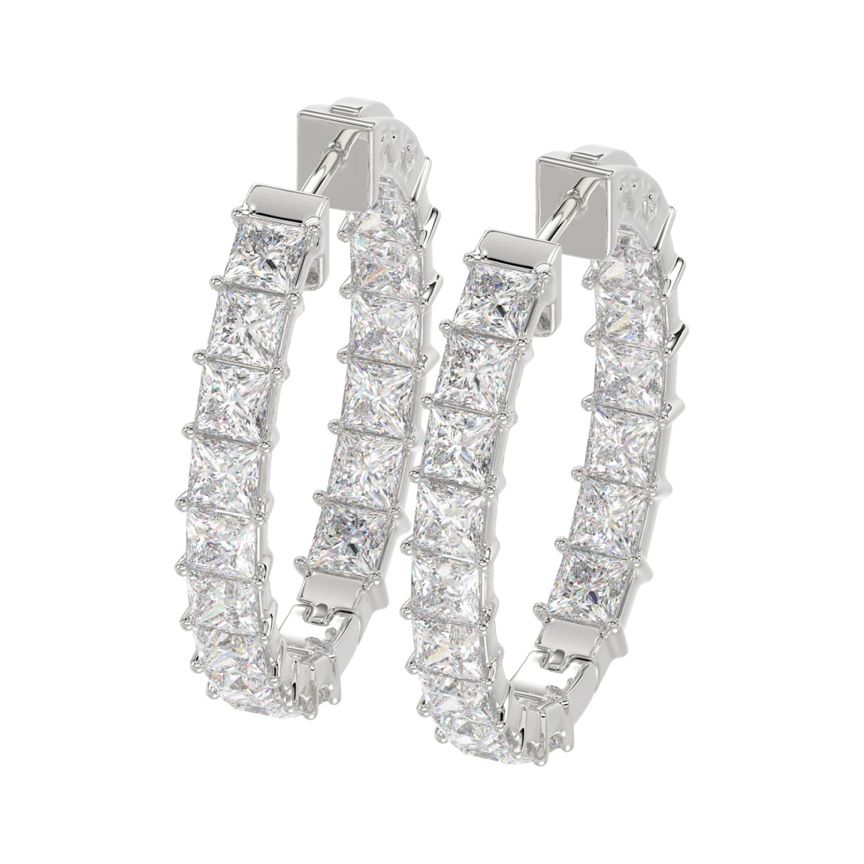Home Earrings LADIES HOOP EARRINGS 5CT PRINCESS DIAMOND 14K WHITE GOLD