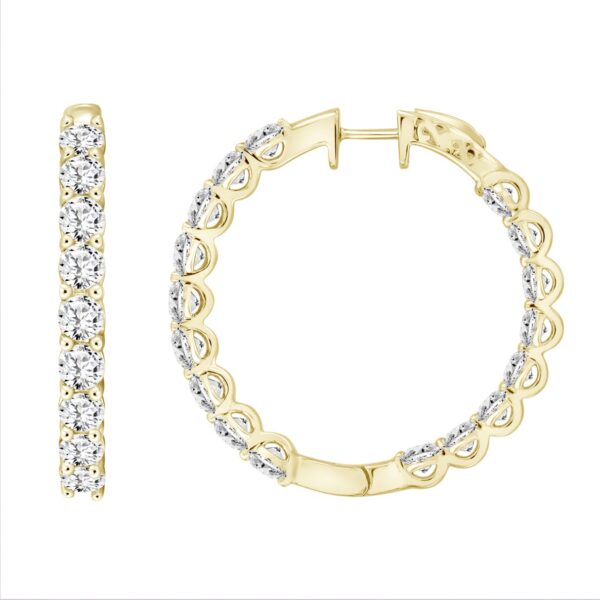LADIES HOOP EARRINGS 7CT ROUND DIAMOND 14K YELLOW GOLD
