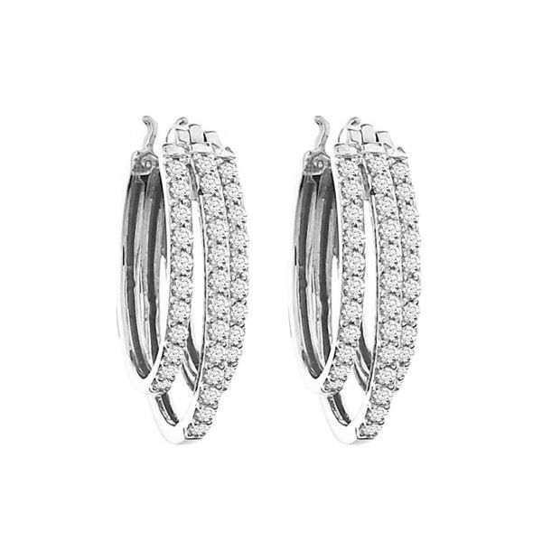 LADIES HOOPS EARRING 1.00CT ROUND DIAMOND 10K WHITE GOLD