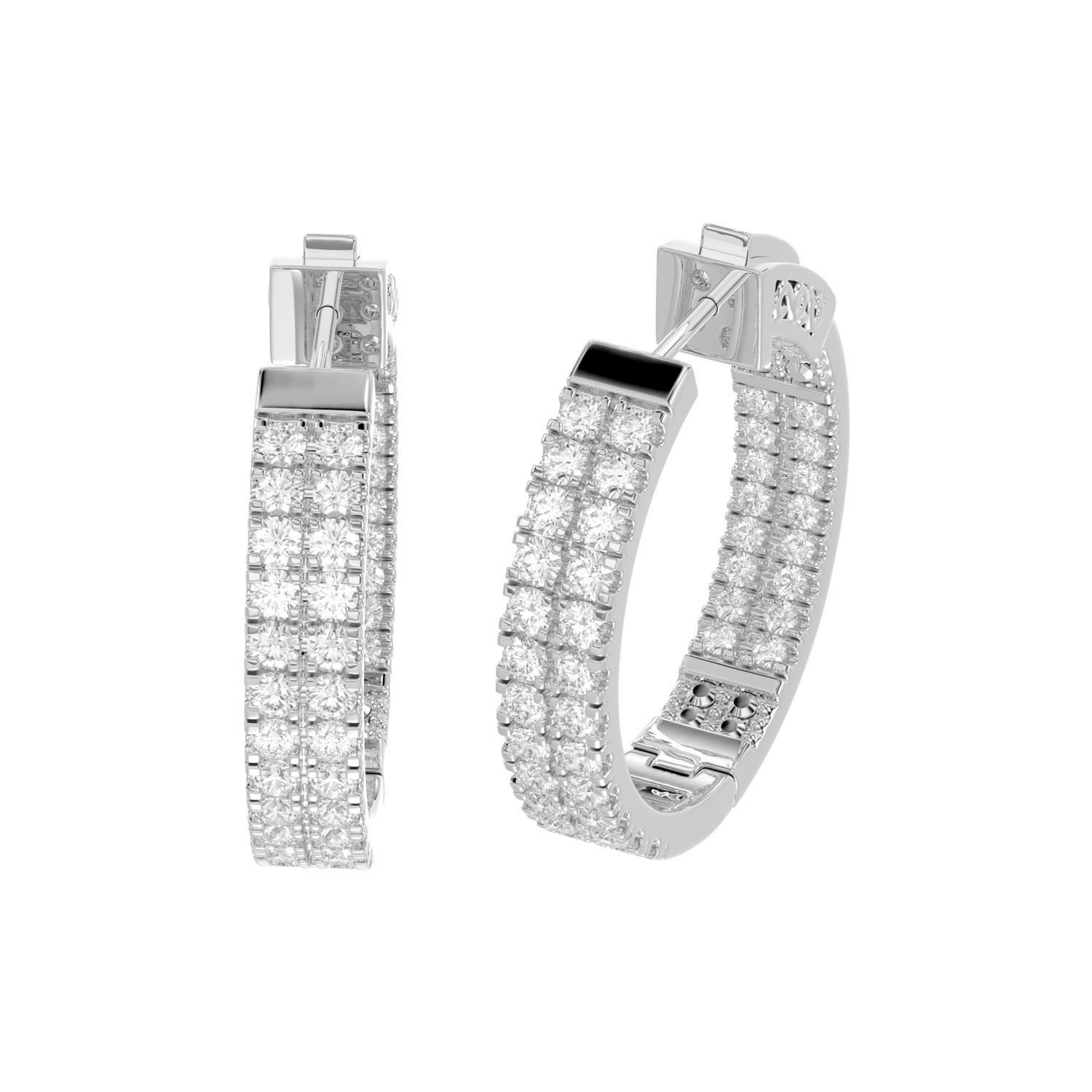 Home Earrings LADIES HOOPS EARRING 3.00CT ROUND DIAMOND 14K WHITE GOLD IN OUT