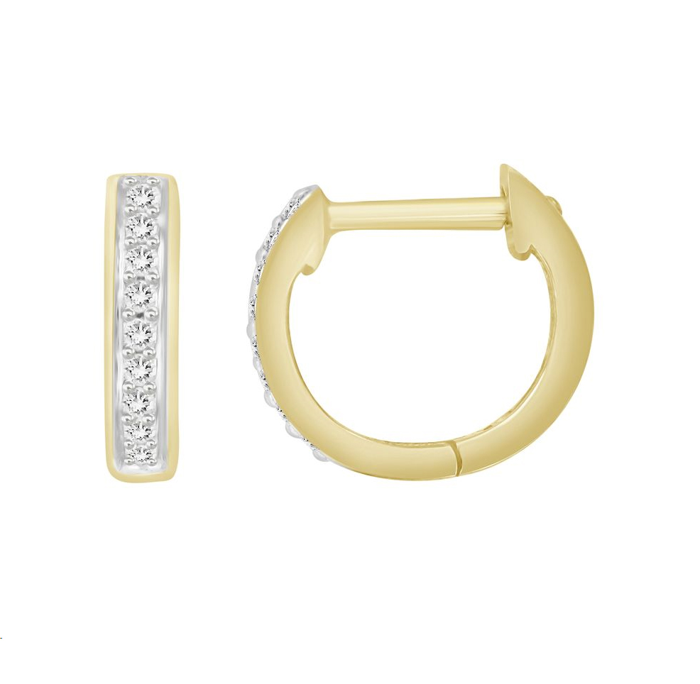 LADIES HOOPS EARRINGS 0.05CT ROUND DIAMOND STERLING SILVER/YELLOW