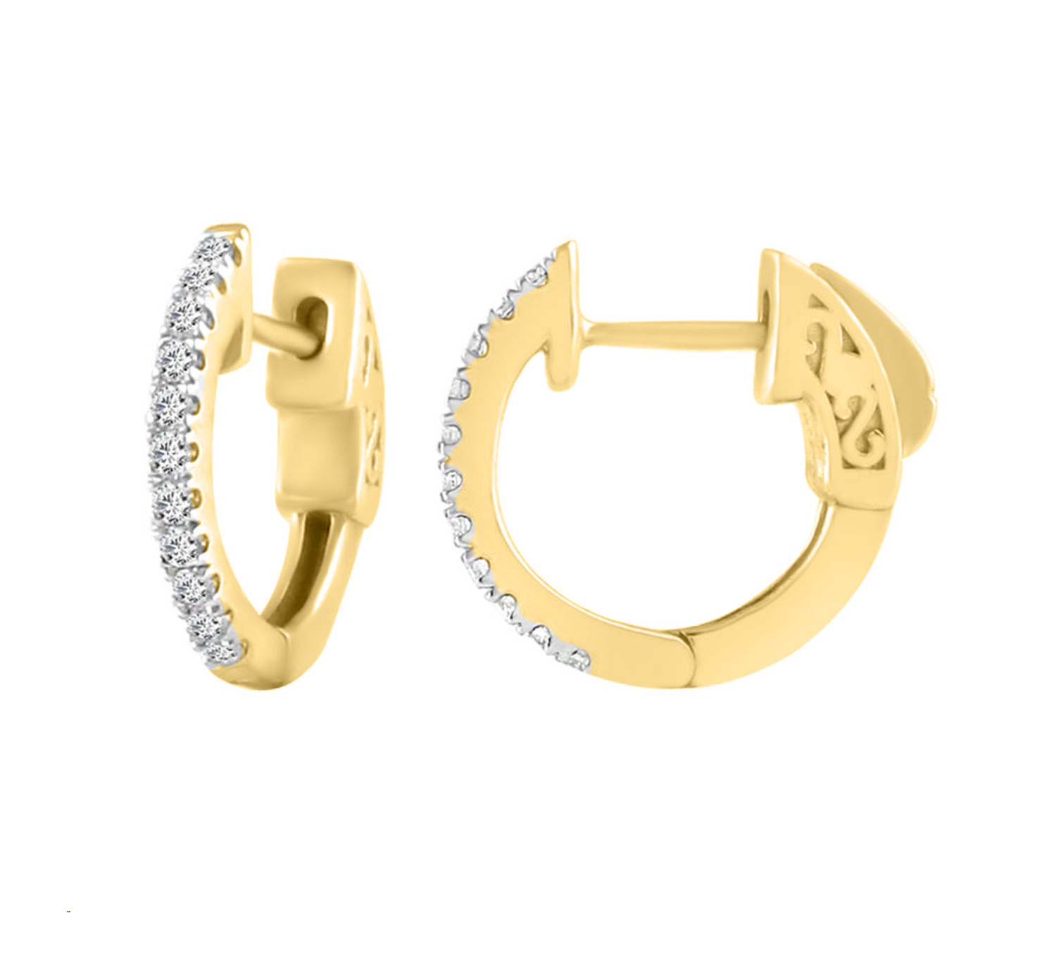 LADIES HOOPS EARRINGS 0.15CT ROUND DIAMOND 14K YELLOW GOLD