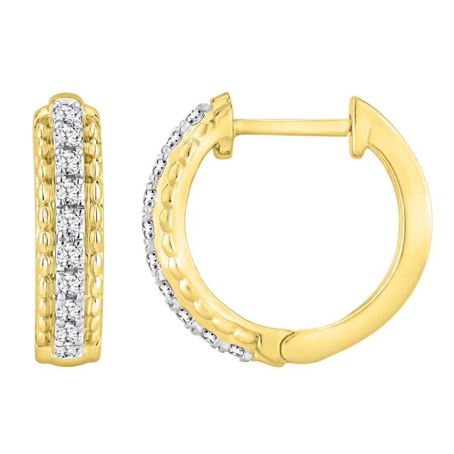 LADIES HOOPS EARRINGS 0.25CT ROUND DIAMOND 10K YELLOW GOLD